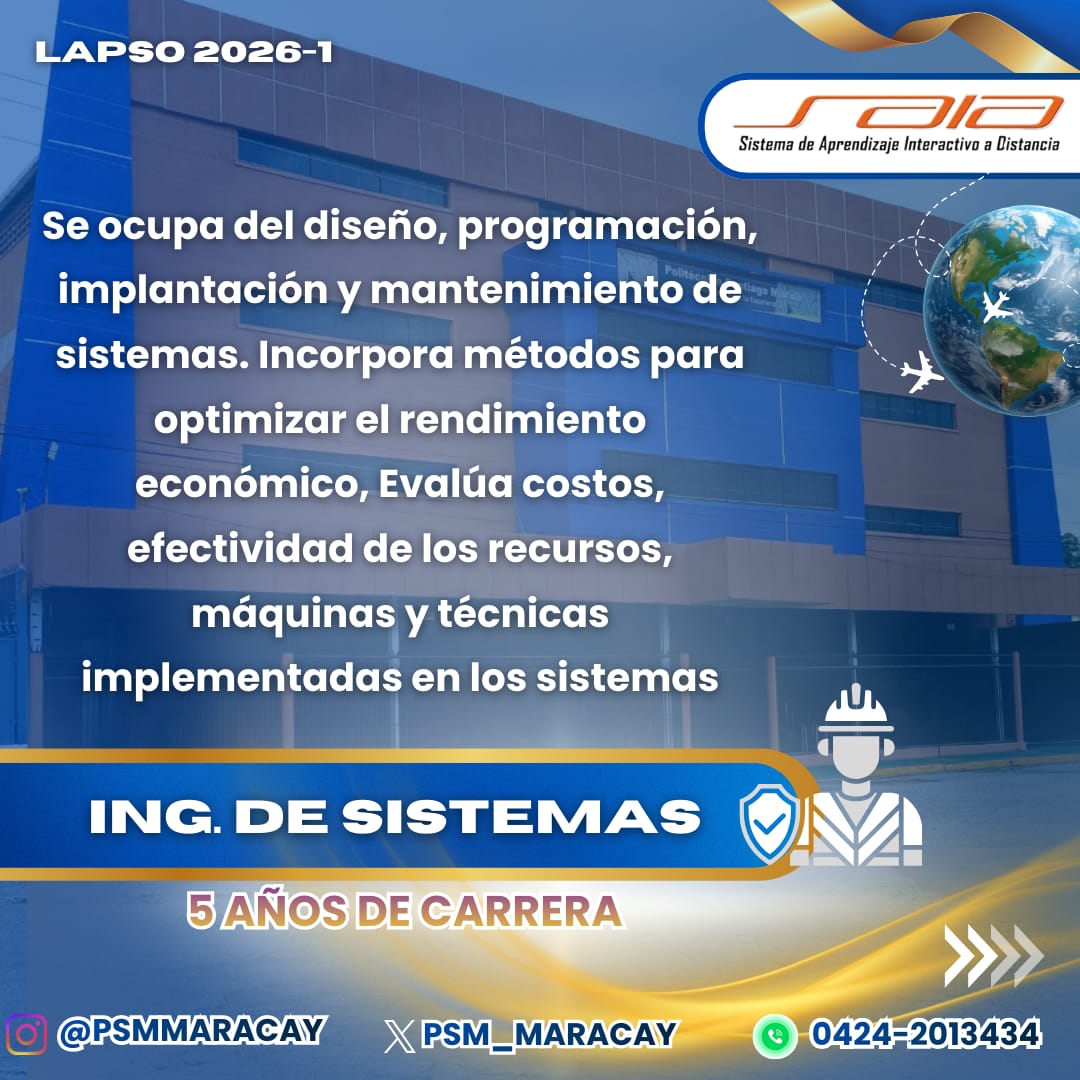 Perfil del Egresado El Ingeniero de Sistemas se ocupa del diseño, programación, implantación y mantenimiento de sistemas. Incorpora métodos para optimizar el rendimiento económico. Evalúa costo, efectividad de los recursos, máquinas y técnicas implementadas en estos sistemas. Corrige la marcha de las diferentes etapas de un proyecto. Define en combinación con la gerencia las necesidades de una organización. Formula planes que permiten integrar diferentes proyectos de un programa general de desarrollo, maneja adecuadamente las relaciones humanas y mantiene una visión global del mundo. |